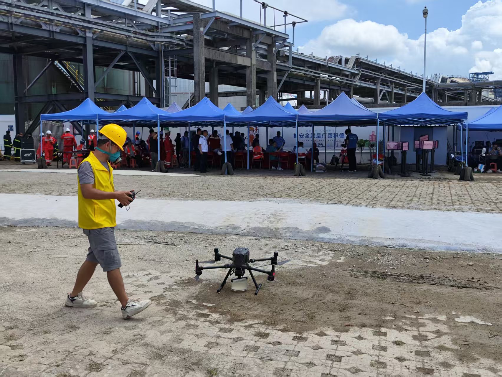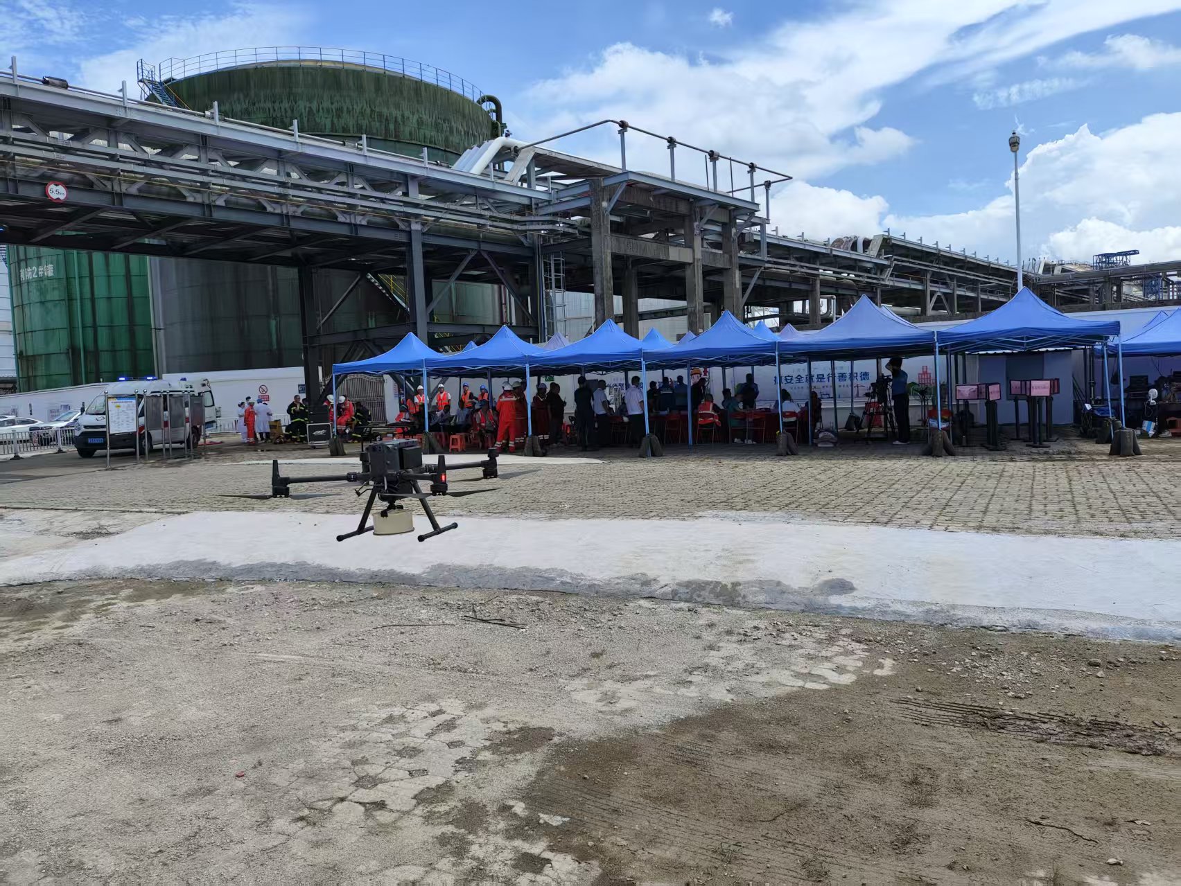 广州飞创使用蜻蜓采样无人机联合相关单位对广东省东莞市九丰码头“水域污染复合型事故应急救援”进行水质采样作业。